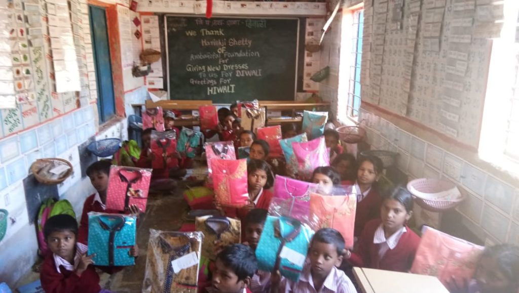 The Foundation believes in the joy of giving and it chose to make this festival of lights a truly radiant one for the villagers. It distributed new clothes among the villagers – young and Old. The school children of the village were also showered with affection and presents of new clothes.